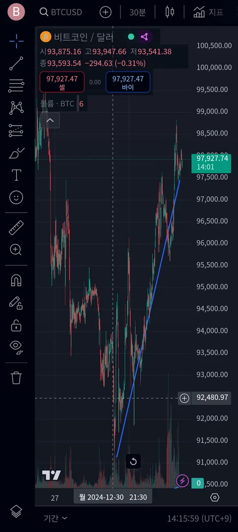 12월이전 하락 추세선을 보이며 저점으로 내려가다 25년 1일이 바뀌며 상승추세선을 기점으로 현재 시점까지 상승하였습니다