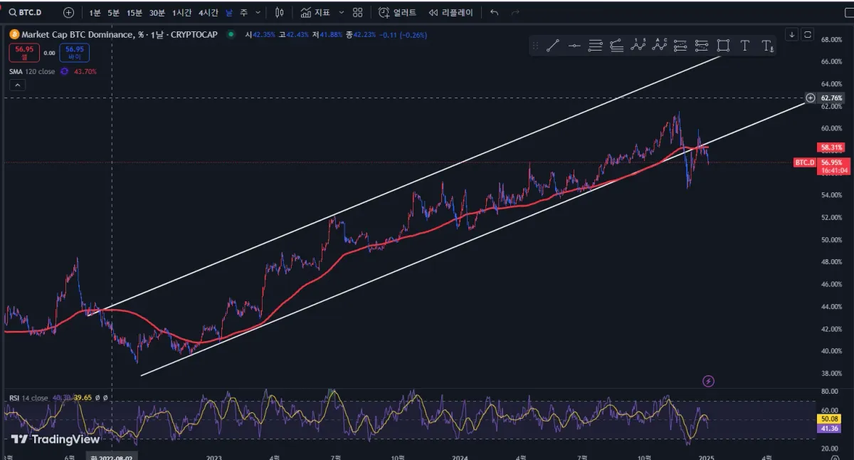 1년 넘게 이어진 상승채널을 하단 돌파가 진행되고 있고