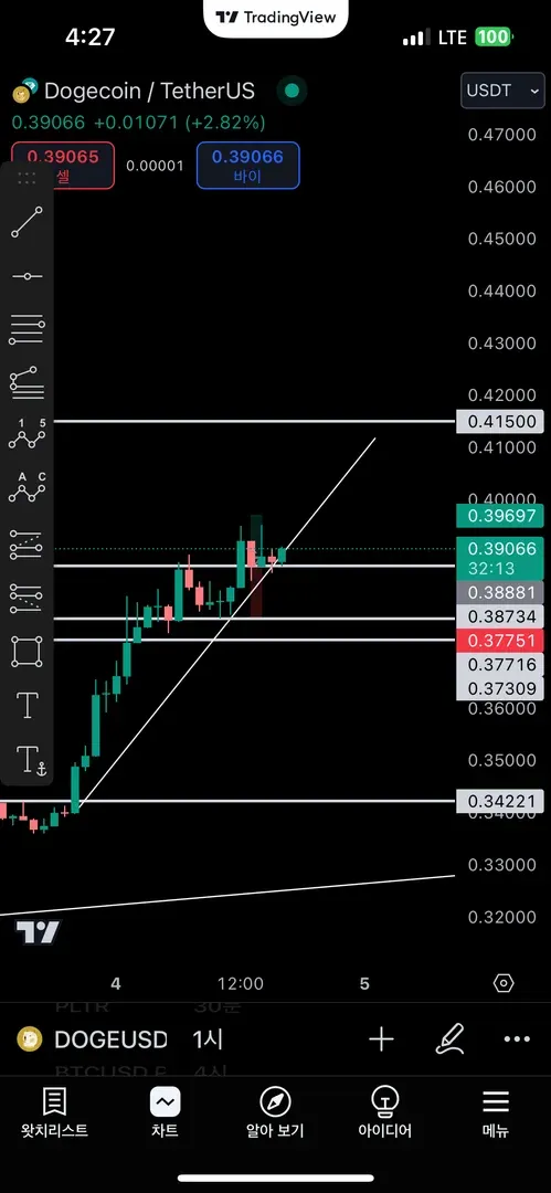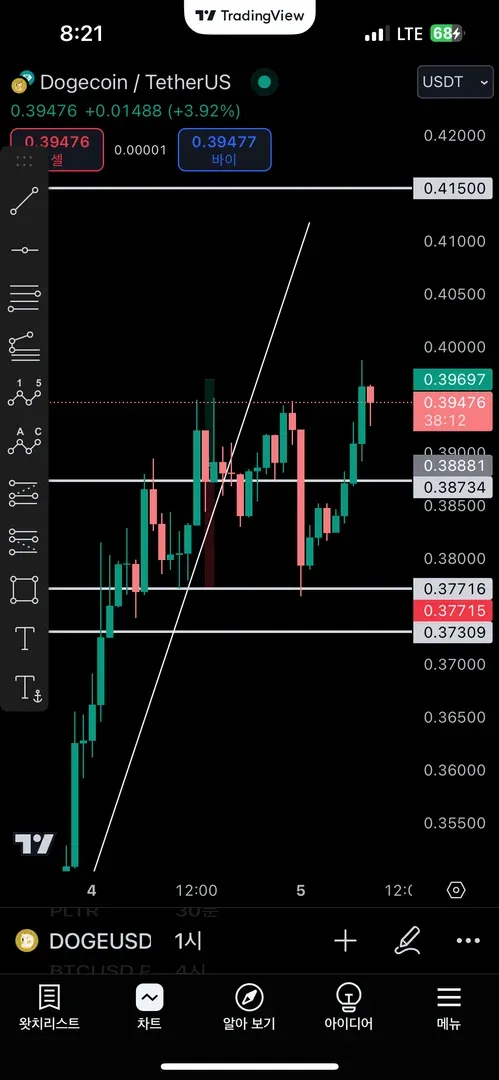 상승추세선을 깨지않고 유지해주고있어서 눌림목에서 진입