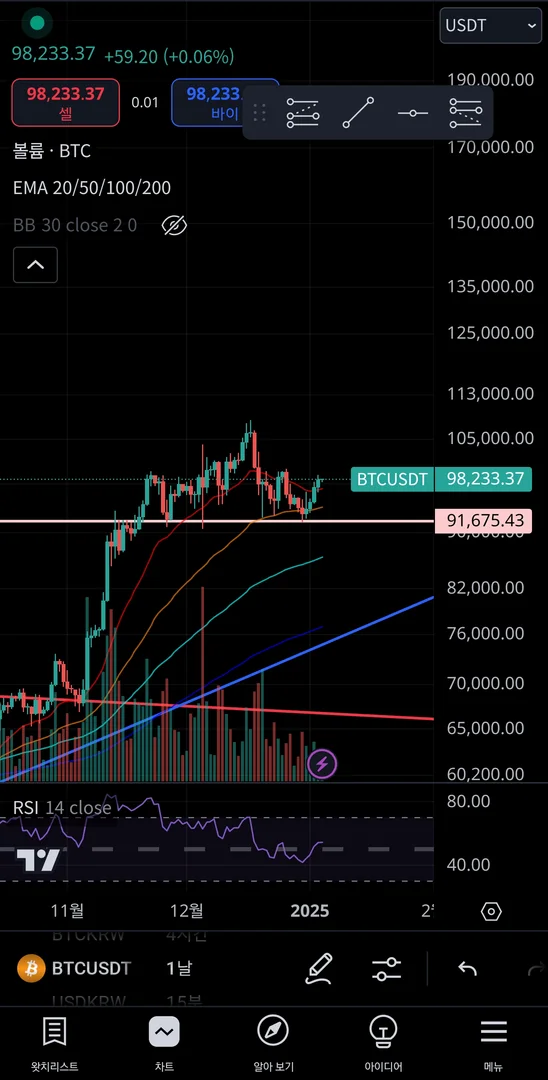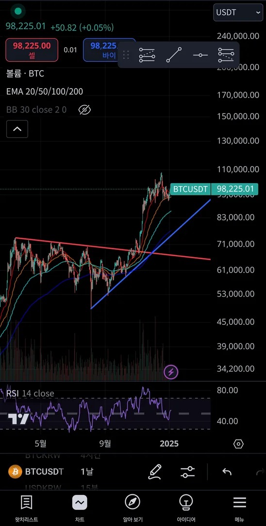 빨간선으로 저항추세선