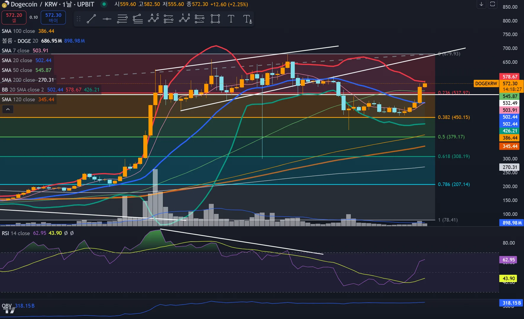 - 0.382구간 일봉상 지지하며 쌍바락 형성 후 양봉에 진입, 보유 중