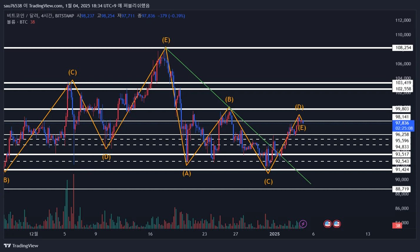 실습강의를 수강한 후 비트코인 차트를 작도해서 혼자 차트분석을 해본뒤 추후 바이비트 모의트레이딩을 통해 롱배팅을 해봤습니다.