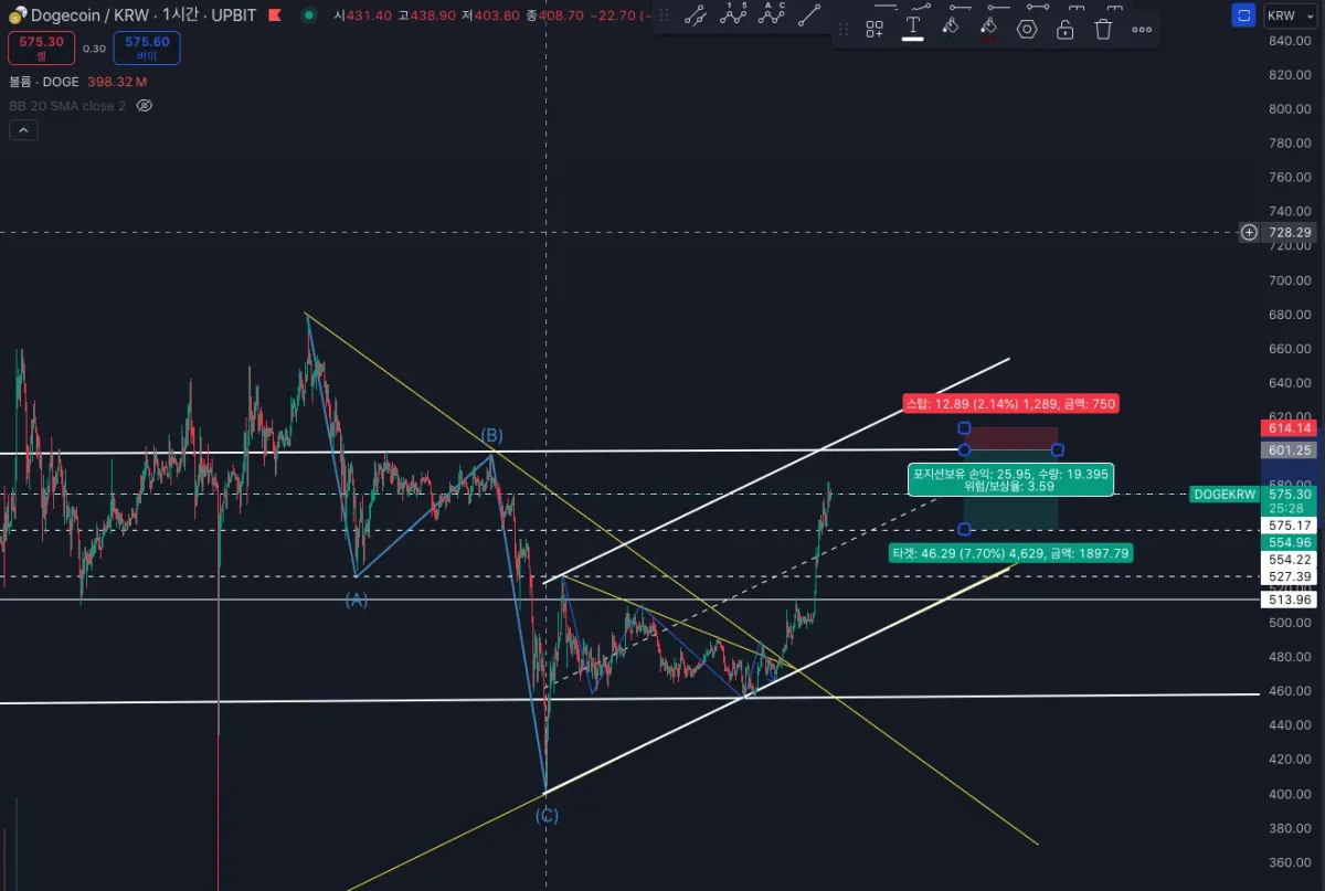 그래도 강의 들은 내용을 토대로 도지/업비트 차트가지고 작도 해 보았습니다.