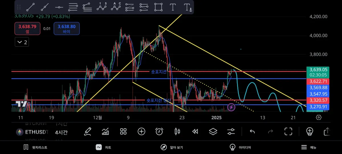 추세선과 지지저항대를 통해 숏포지션에 들어가 보았습니다