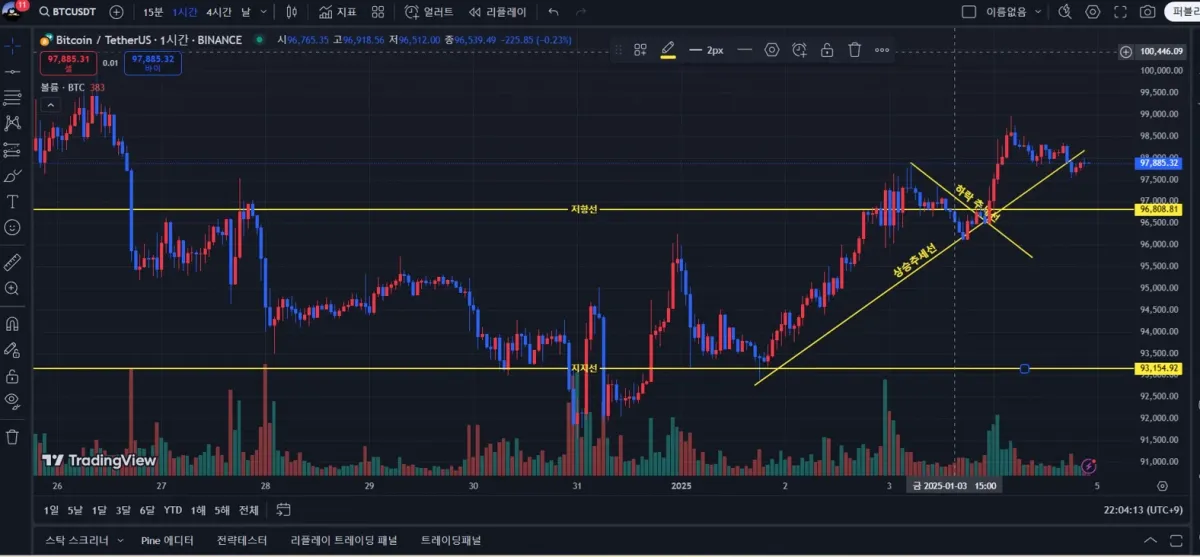 왕 초보라 상향, 하락 추세선 선정및 저항선과 지지선 선택이 참으로 어려웠습니다. 나름 배우고 느낀대로 적용할려고 노력했는데, 제대로 되었는지 모르겠네요.