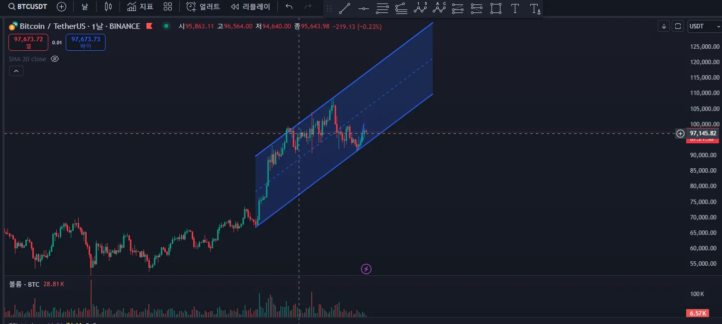 현재는 아랫 지지에서 반등이 나와 채널 중앙을 향해 가고 있다 생각듭니다...
