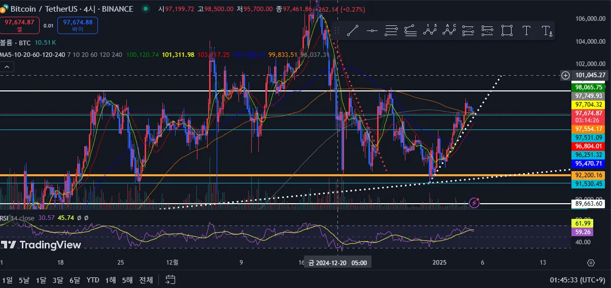 아직 실력이 부족하여 모의 트레이딩으로 진행하였습니다 위에는 4시간 봉 차트이며 상승 추세가 지속되고 상승추세선의 지지를 받은것으로 파악하여 롱 포지션 진입해씁니다 현재 계속 진행되고 있으므로 수익이나 손실이 발생 할 시 추가 업데이트 하겠습니다. 생각보다 해외거래소 이용하는것이 익숙치 않아 힘듭니다.. ㅠㅠ