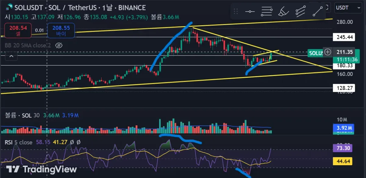 트레이딩뷰에서 솔라나 차트를 보다가 발견하게 된 rsi