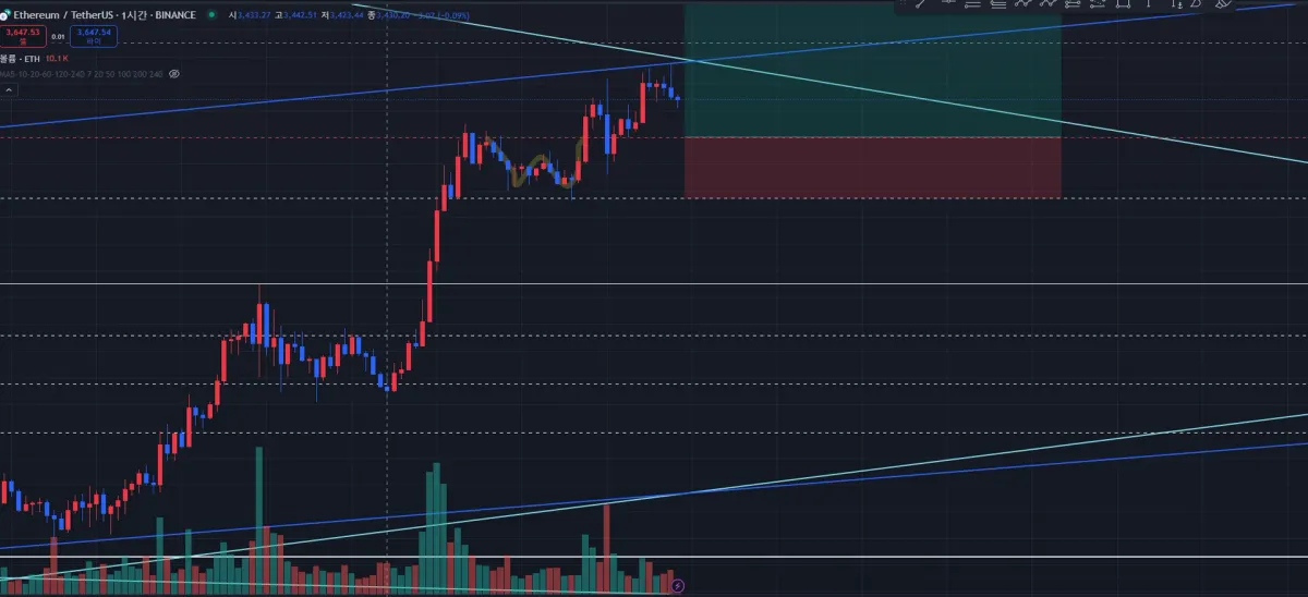 따라서 아래 지지선을 도달 (3620.32 USDT) 한다면 롱 포지션 진입 / 1:3.5 손익비로 TP/SL 설정 후 지정가 롱 걸어놓은 상태.
