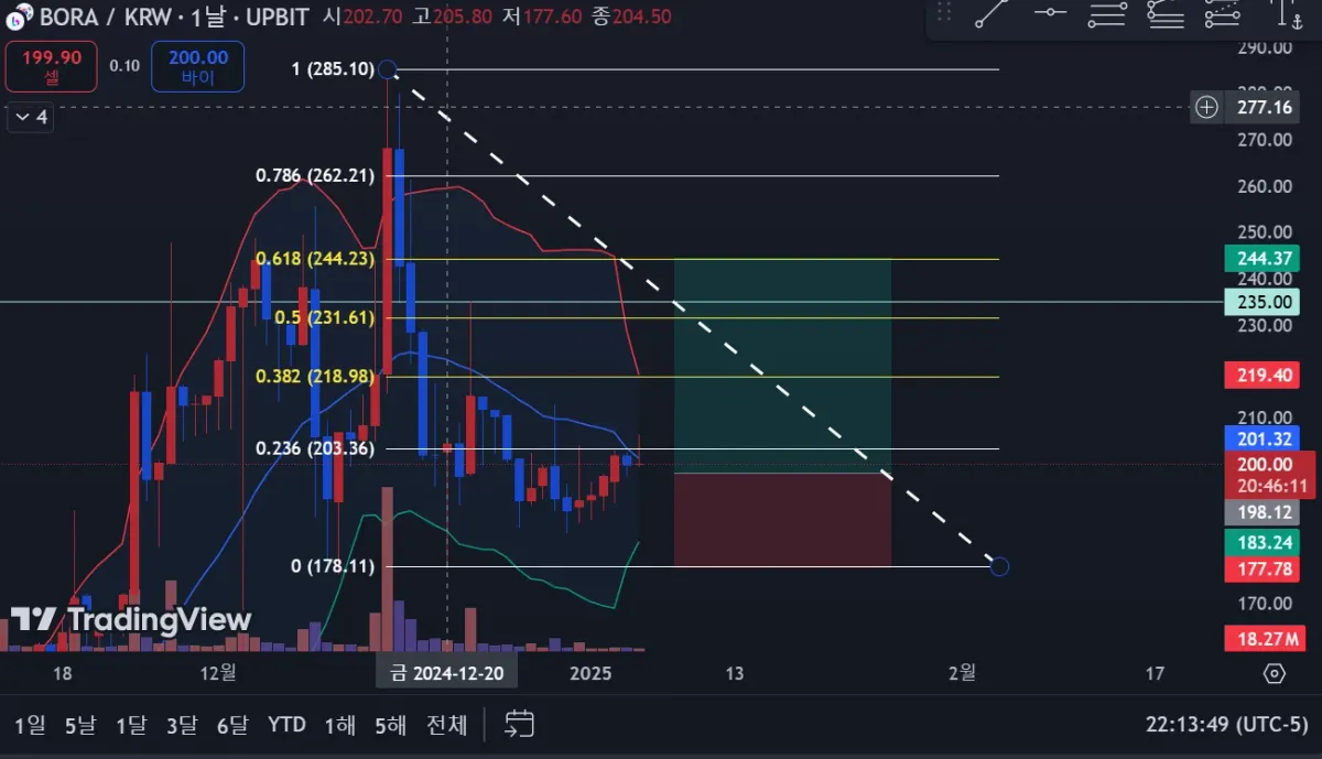 아직 해외 거래소가 없어서 업비트 어플로 소액으로 해봤습니다. 피보나치 특강 때 알려 주셨던 매매법이 생각나서 177.6손절 0.382 0.5 0.618 분할 익절을 목표로 진입했습니다.