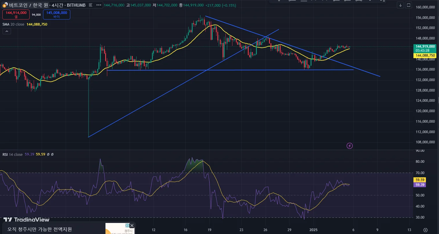 단기 상승추세선을 이탈한 모습이 보이고 단기 하락추세선을 이탈한 모습을 보일떄 점차 상승할거같습니다.