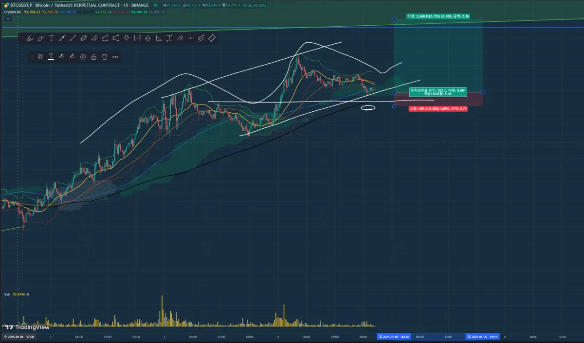 파동 단기 4파 +단기추세에서 지지 같아서 진입