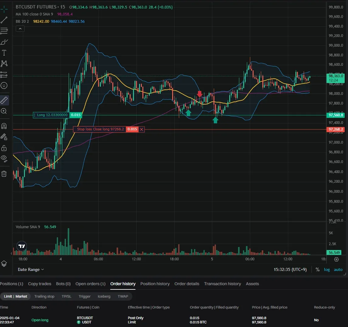 그리고 오늘 상승추세는 꺠져서 첫목표가 100k 관점파기+ 26일 강한일봉음봉으로인하여 추세지속은 어렵다 판단. 다음 고점에서 정리후 관망예정