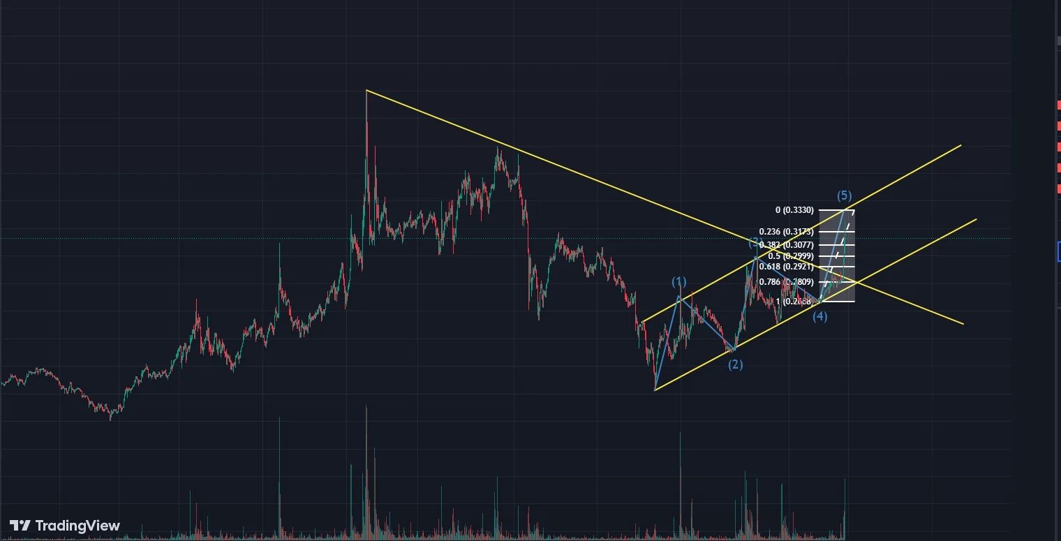 파워렛지 1시간봉 차트 입니다 얼리어트 파동으로 5번째 큰 상승 및 삼각 수렴 상단 돌파 시 큰 상승이 나올거라 보았고, 다른 관점으로는 베어 플래그 패턴으로 삼각수렴 하단 돌파시 큰 하락이 올거같아 숏관점 대기하였다가 삼각수렴 상단 돌파 보고 롱 진입 하였습니다!