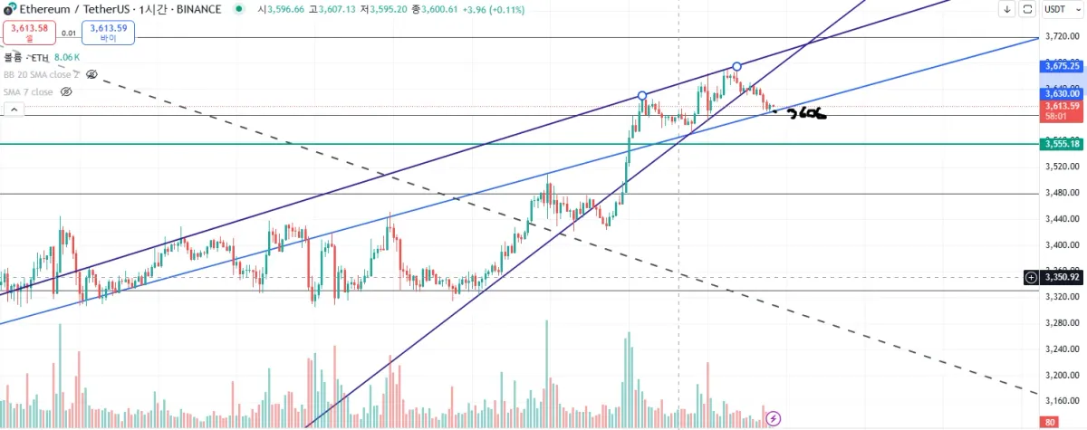 숏을 지정으로 했엇는데 제가 실수를 했는지 3610에 체결이 되어있네요. 일단은 SL를 설정해두고 천천히 지켜보겠습니다.