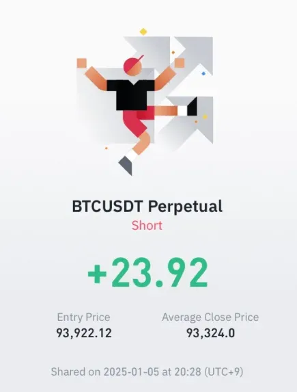 지난 12월 31일 교육에서 배웠던 보조지표를 활용해서 숏 포지션을 잡아 수익이 생겼습니다.