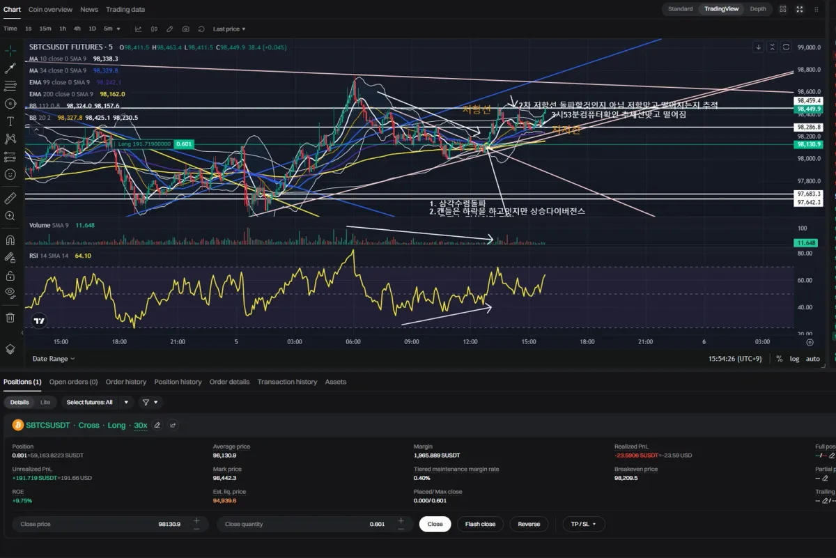 추세선을 미리그어놓고 제가 원하는 타점이 나와서 딱맞게 들어와서 들어갔습니다.