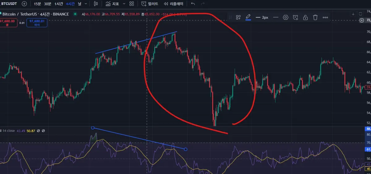 다이버전스 : 가격과 지표의 방향이 반대로 가는 현상