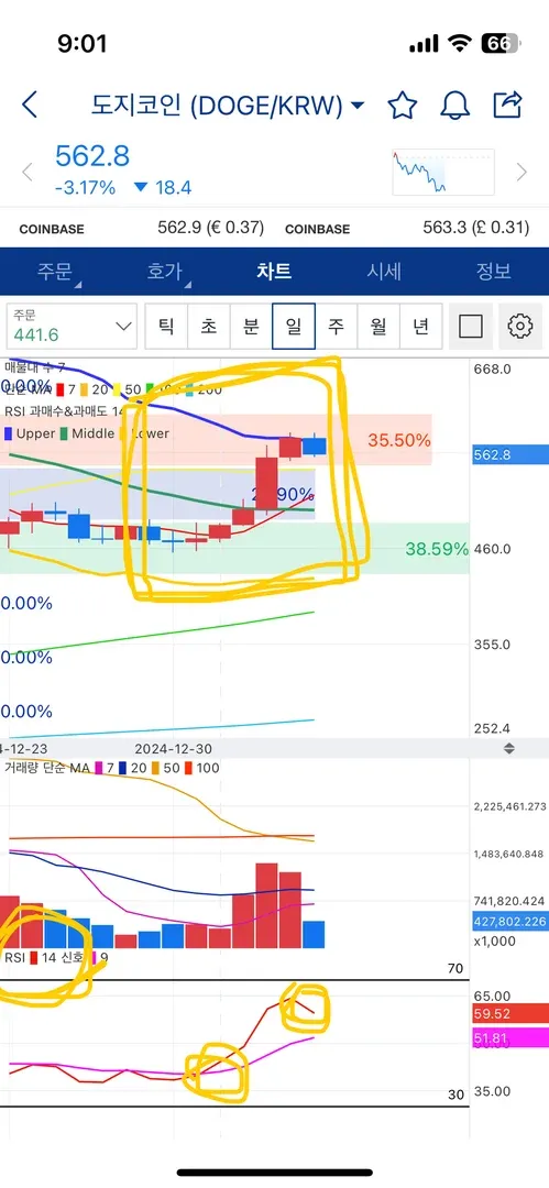 제가 매매에 참고하였던 건 저항과 지지, 볼린저밴드 RSI 입니다