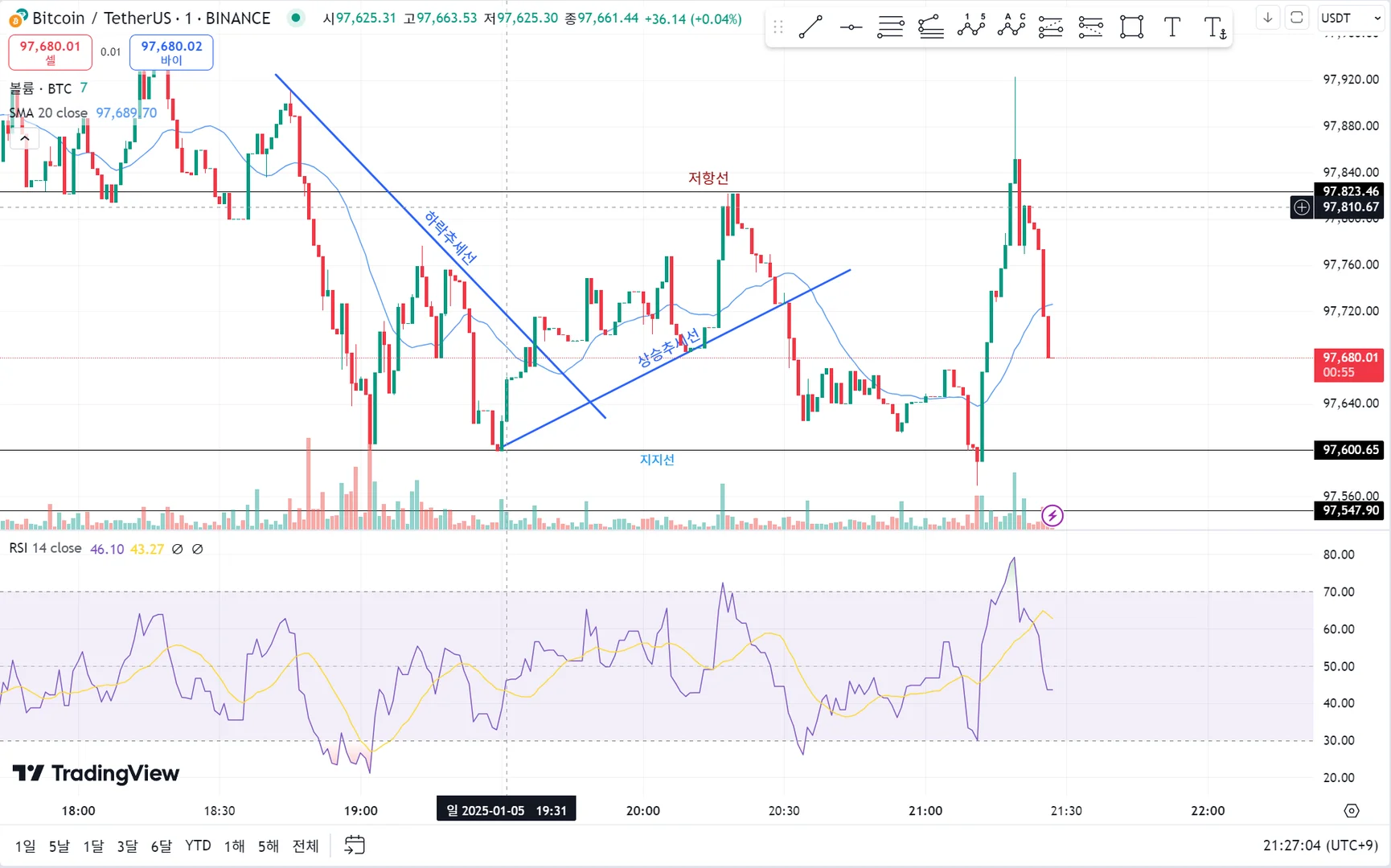 [30일 챌린지 9기 1주차] 추세 지지 저항선 실습