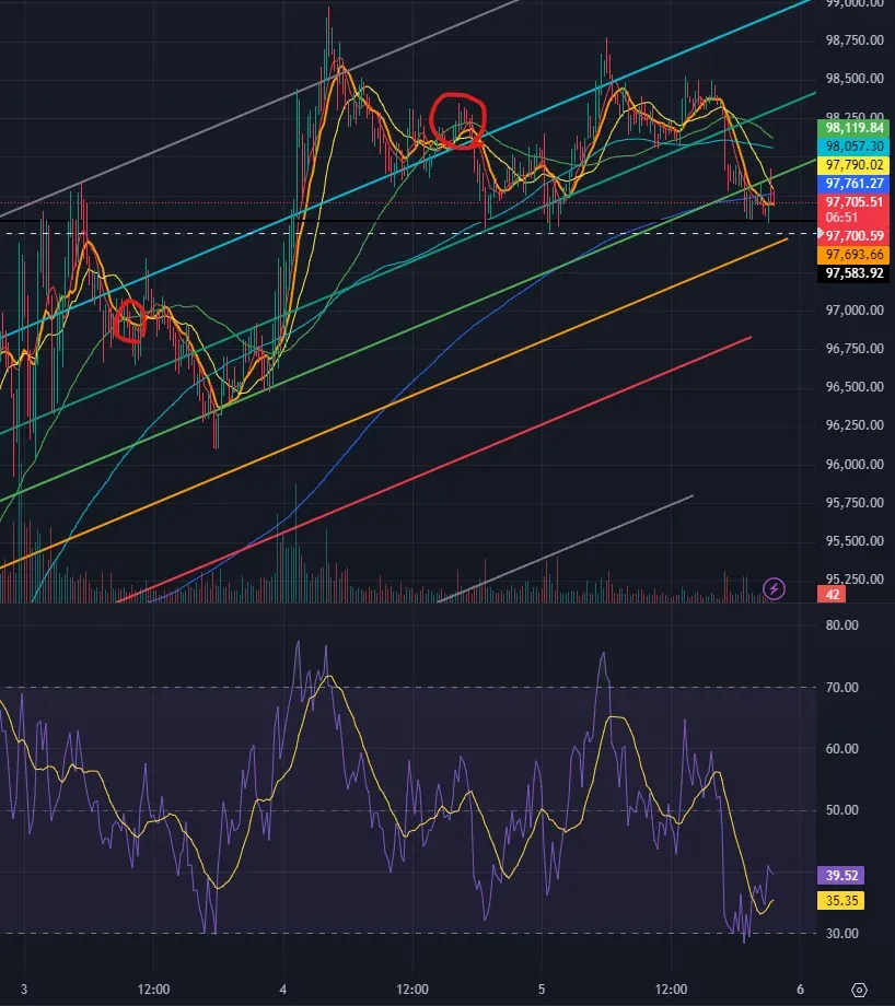 연습 중이라 시드가 크지 않지만 비트코인 차트보면서 채널 상단 뚫으려는 두번째 모습을 보고 진입했습니다.