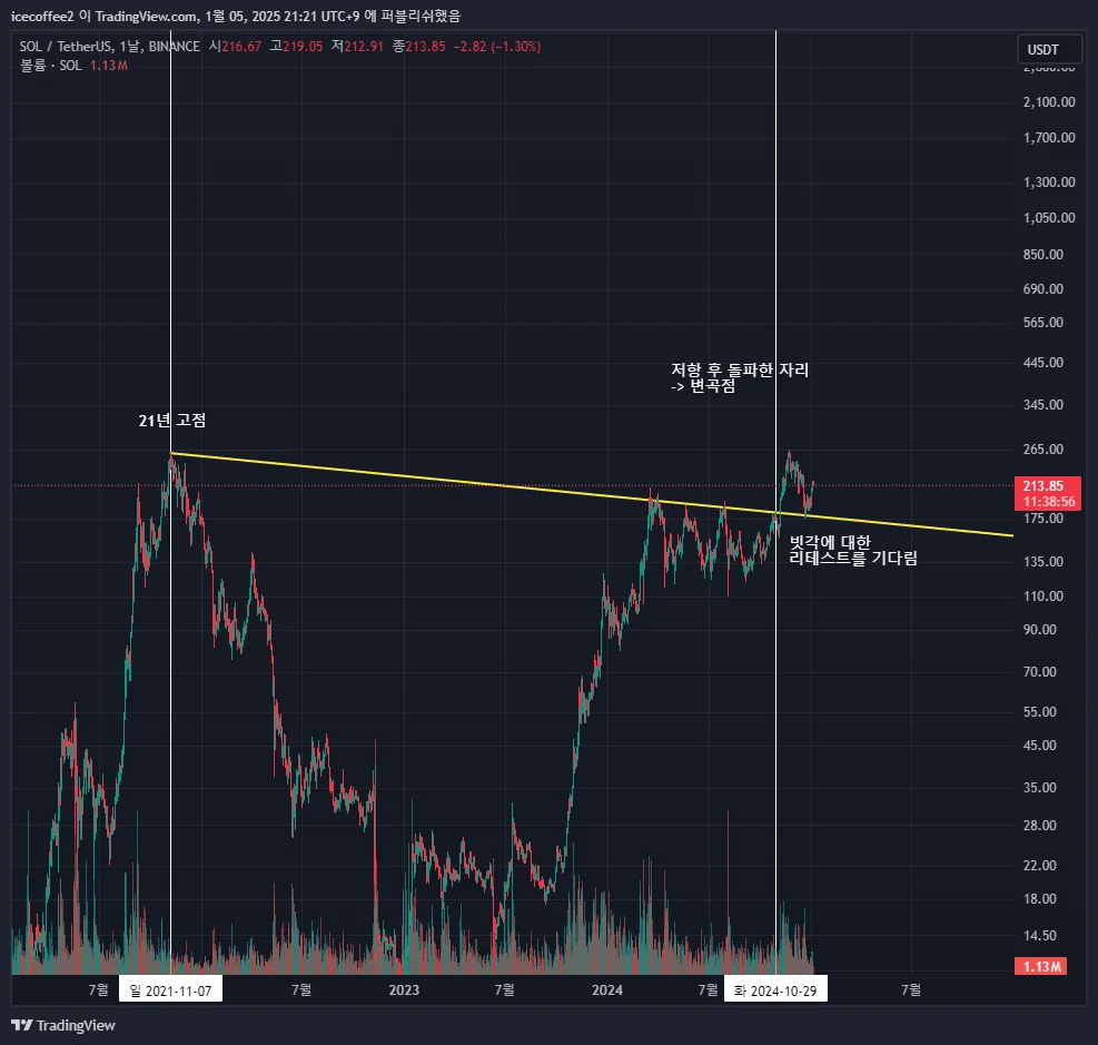 SOLUSDT 현재 13.5% 수익중입니다.