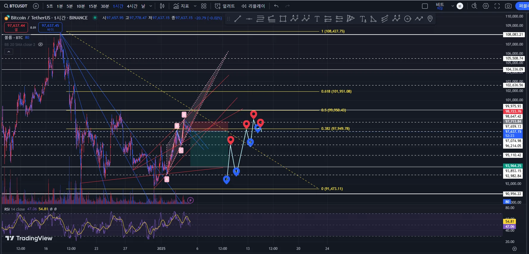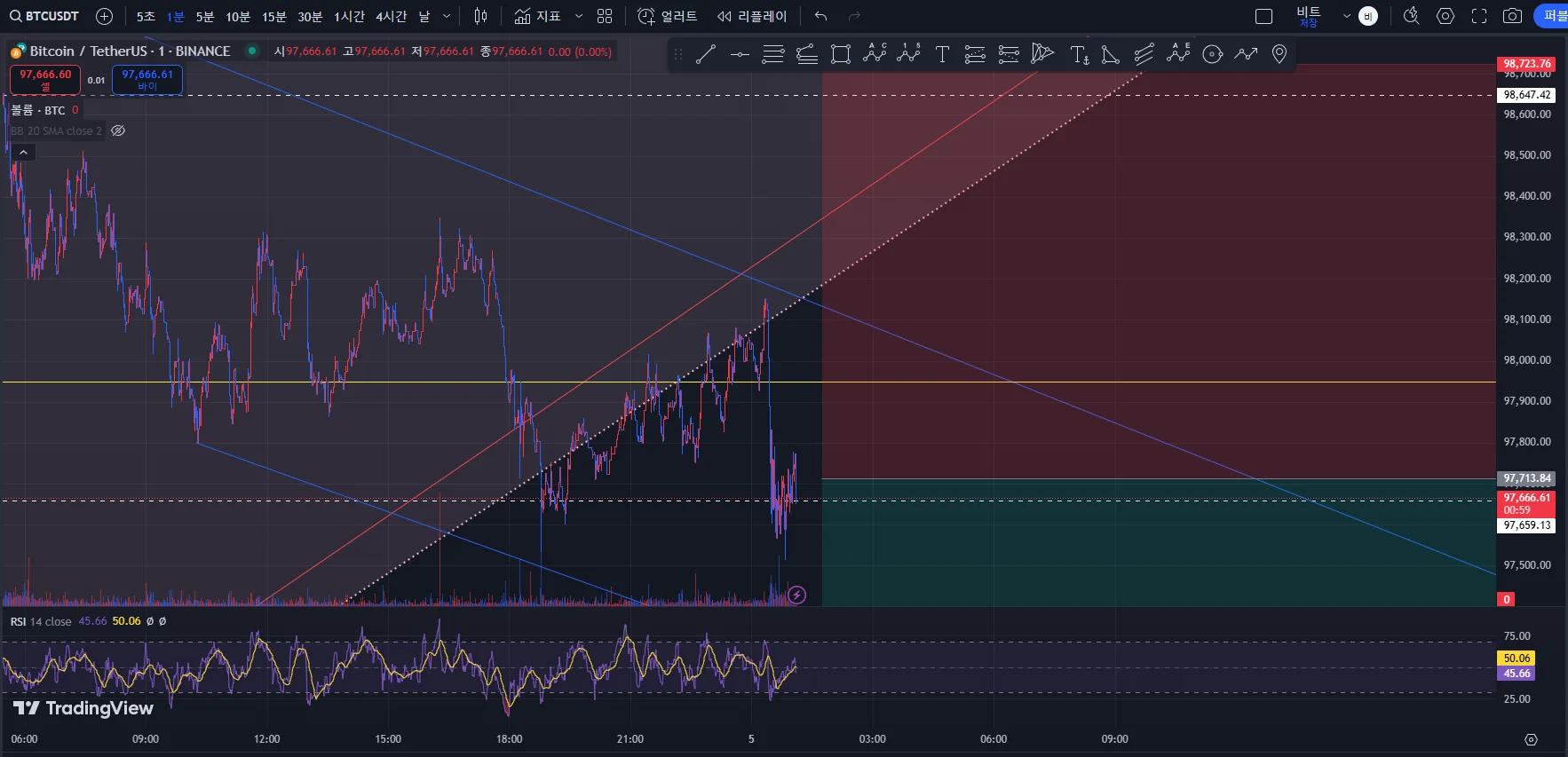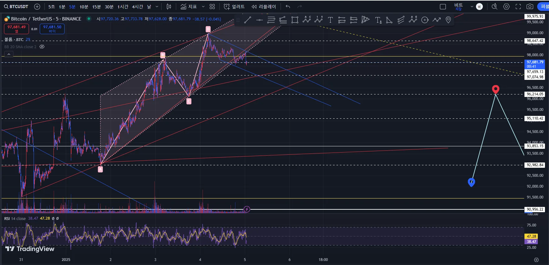 (다시 보니 99k 저항선이 꽤 강력하네요. 위치를 다소 수정할 필요가 있어보임.)