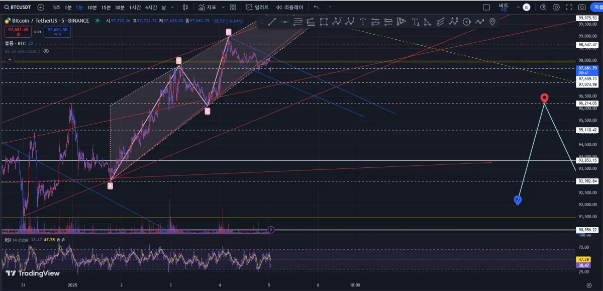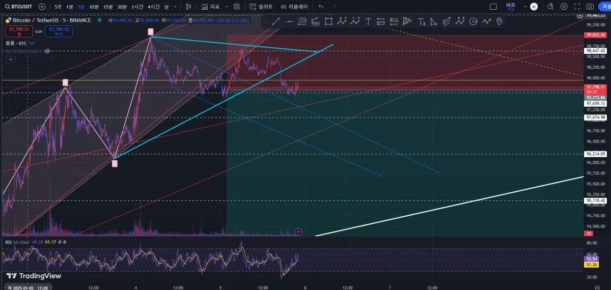 (다시 보니 99k 저항선이 꽤 강력하네요. 위치를 다소 수정할 필요가 있어보임.)