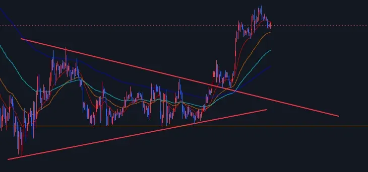 비트 코인이 여러번 조정이 나오는데도 이더리움은 3300부근 지지를 확실히 해주는 것 같은 느낌을 받았고 삼각수렴 바닥에서 맛보기로 롱포지션 진입 후 삼각수렴 돌파 후 리테스트 구간에서 롱포지션 본격 진입하여 현재 반 익절 후 반 홀딩 중입니다.
