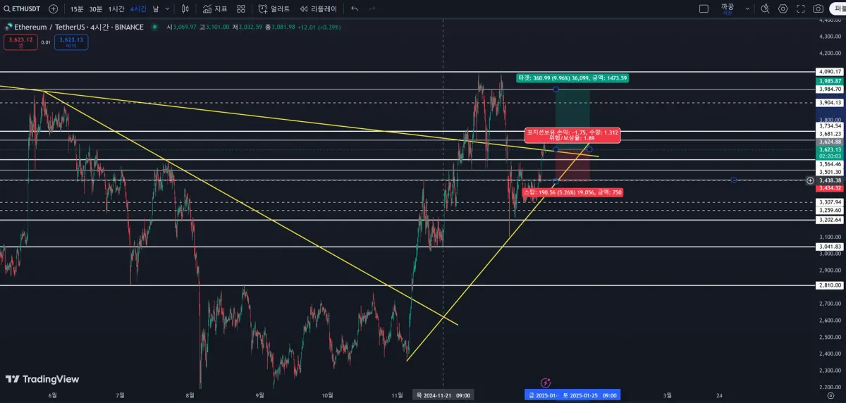 익절 라인은 전고점까진 사실 갈 것 같지만 손익비가 나쁘지 않고 저항도 한번은 받을 것 같아 추세를 봐서 숏으로도 포지션 들어갈 수 있다고 판단해서 전고점 전 저항선까지로만 잡아봤습니다 !