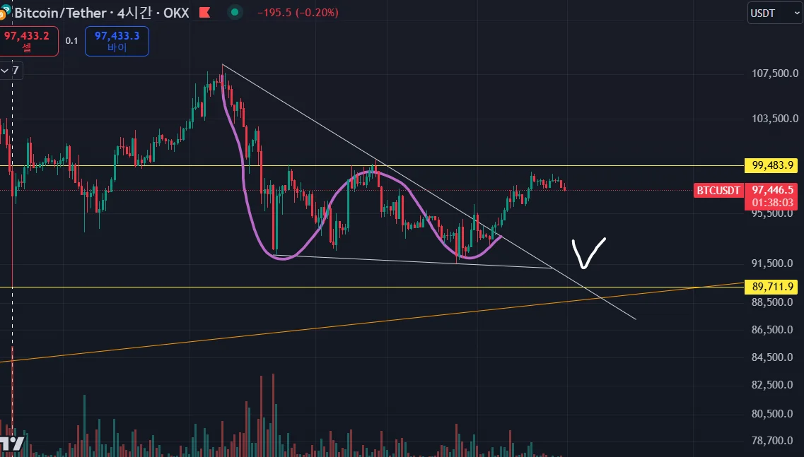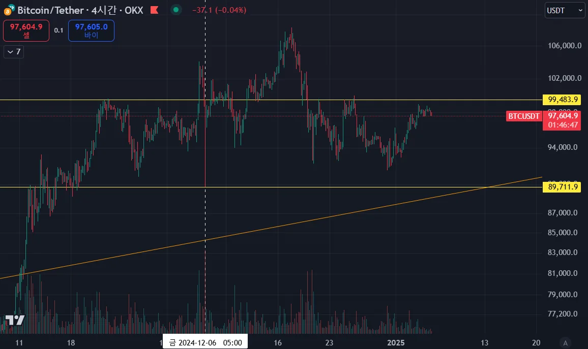 - 4시간봉 기준 주요 라인 : 99.5K , 89.7K