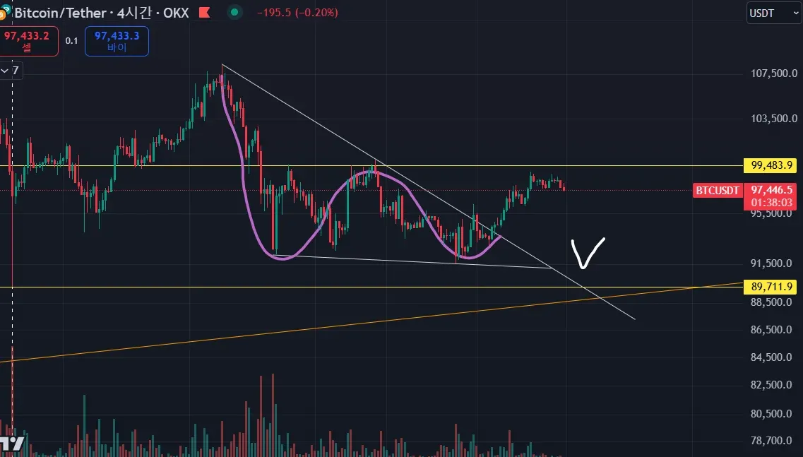 • 4시간봉 기준 주요 라인 : 99.5K , 89.7K