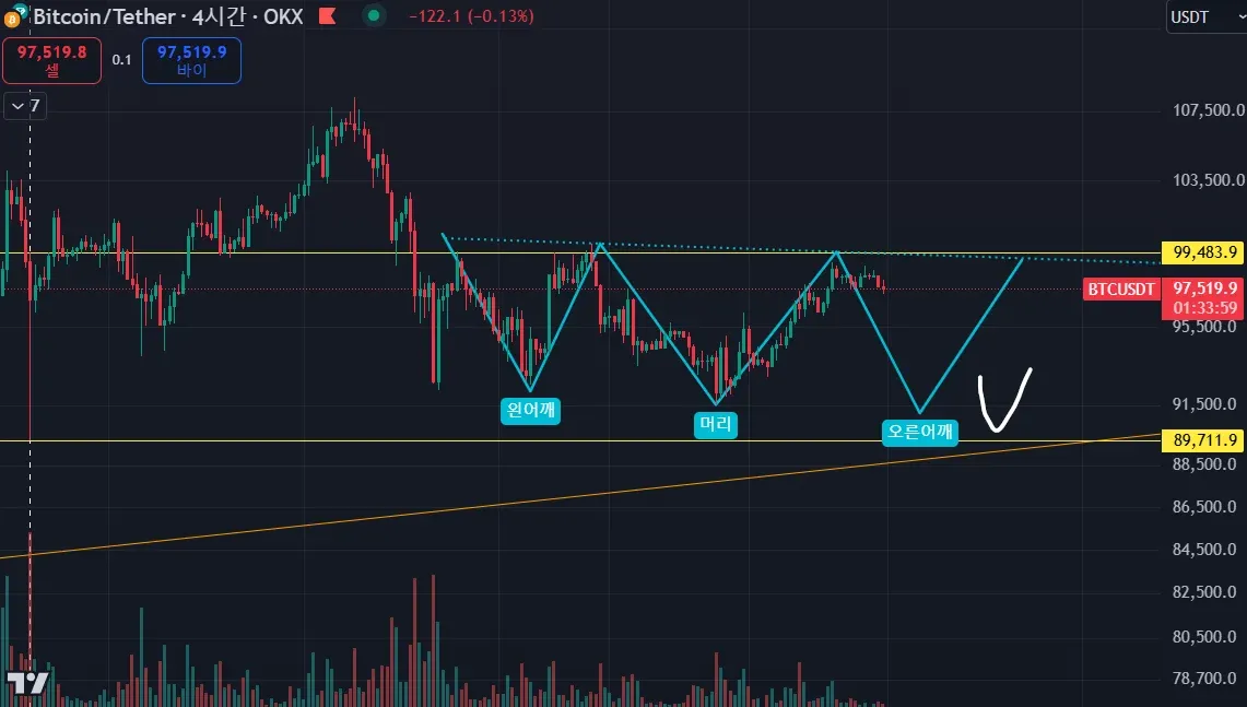 또한 한번 더 내려왔다가 올라가게 된다면 역헤드앤숄더 모습도 보여지는 거 같아서