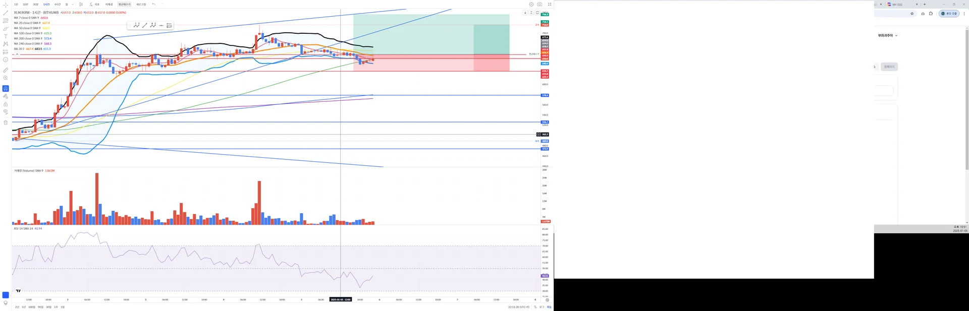 저점이 닿으면 쭉 떨어질 것으로 예상 되므로 , 626원에 손절을 걸어 놓은 상태이며