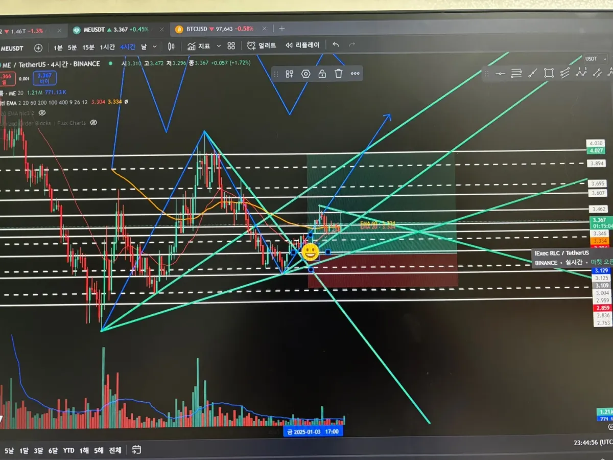 현재 비트코인, 알트코인 모두 상승추세에 있어서 추세선과 지지선에 맞춰 매매를 진입하였습니다. 현재 6퍼센트 수익중이고, 위 상단에 도달할 때 익절을 할 생각입니다.