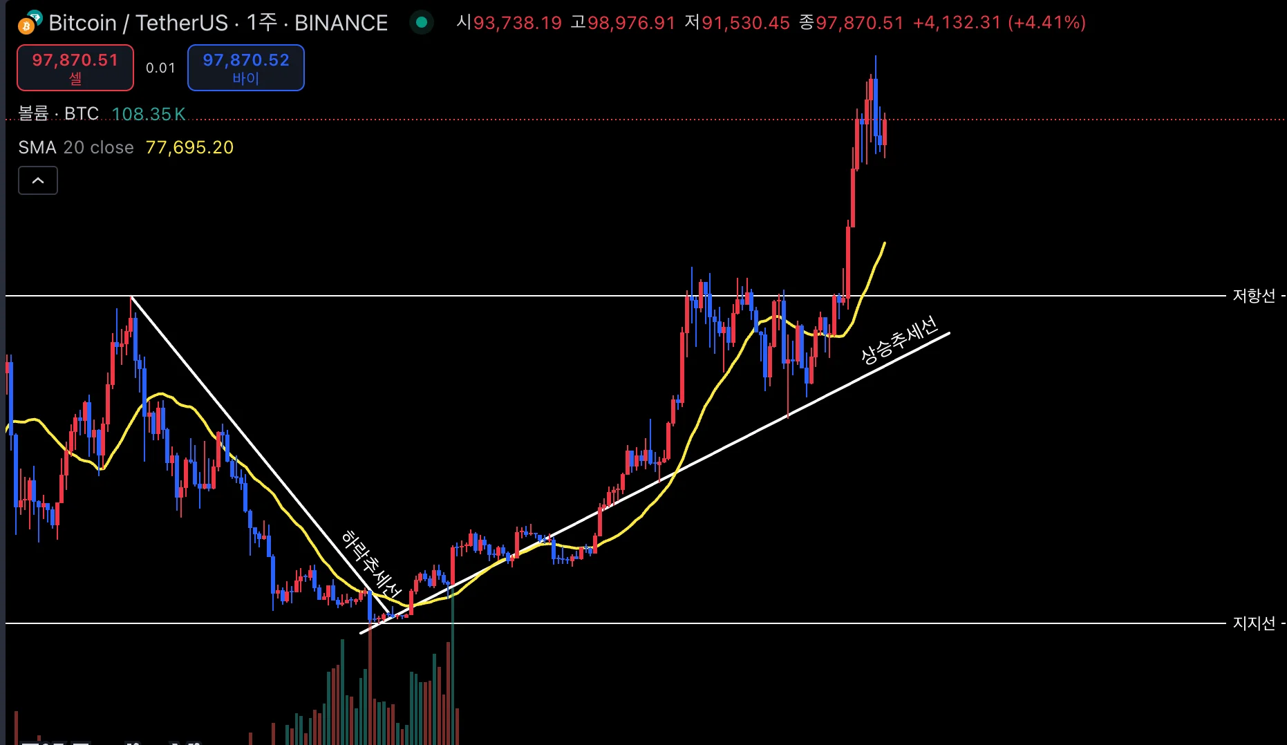 주봉급 추세선을 작도해 보셨네요 ㅎ