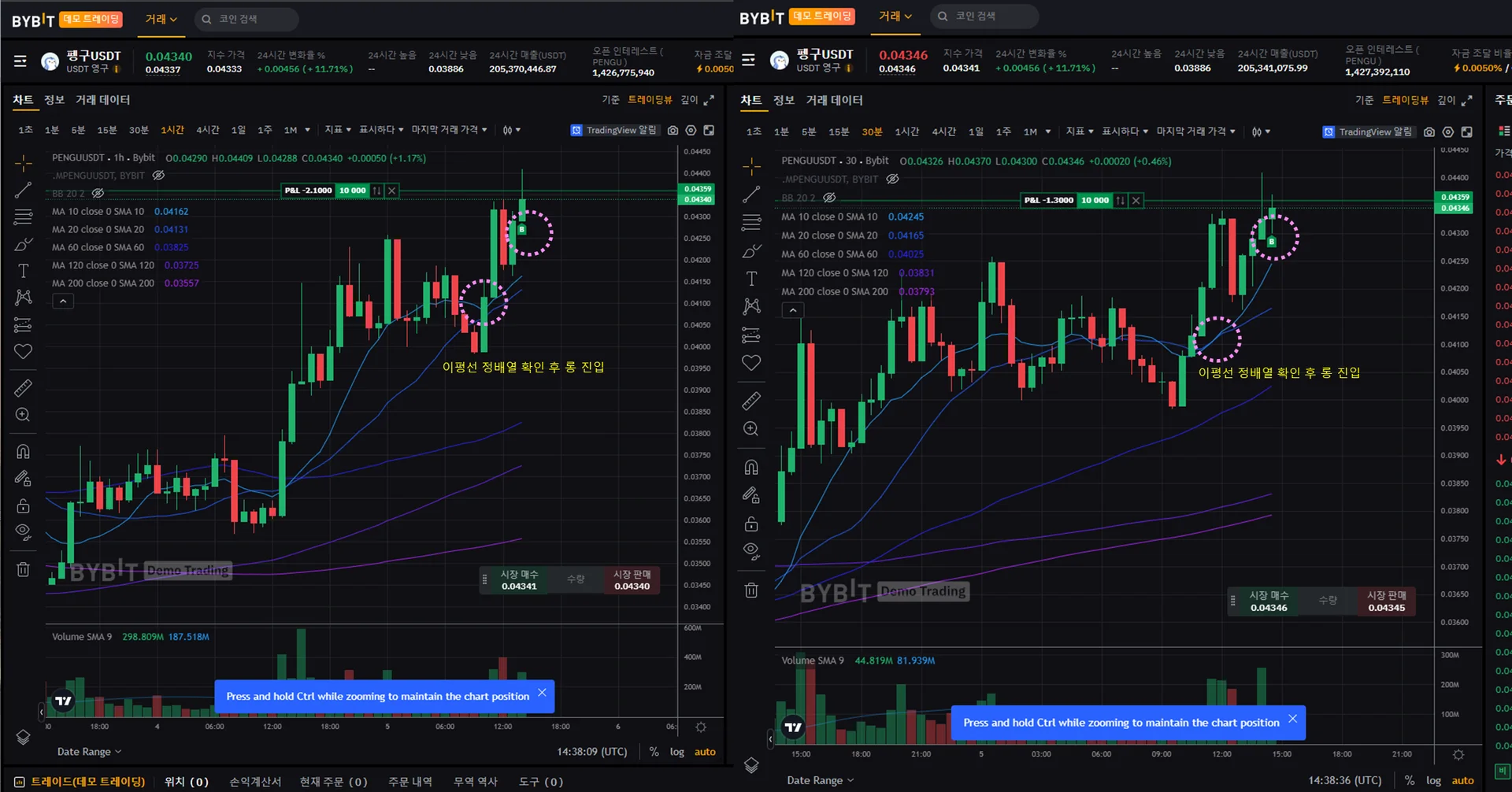 기존에 매수했던 코인들은 근거 없이 그냥 저점인 것 같다 해서 구매한 상태라, 바이비트 모의투자를 진행해봤습니다.