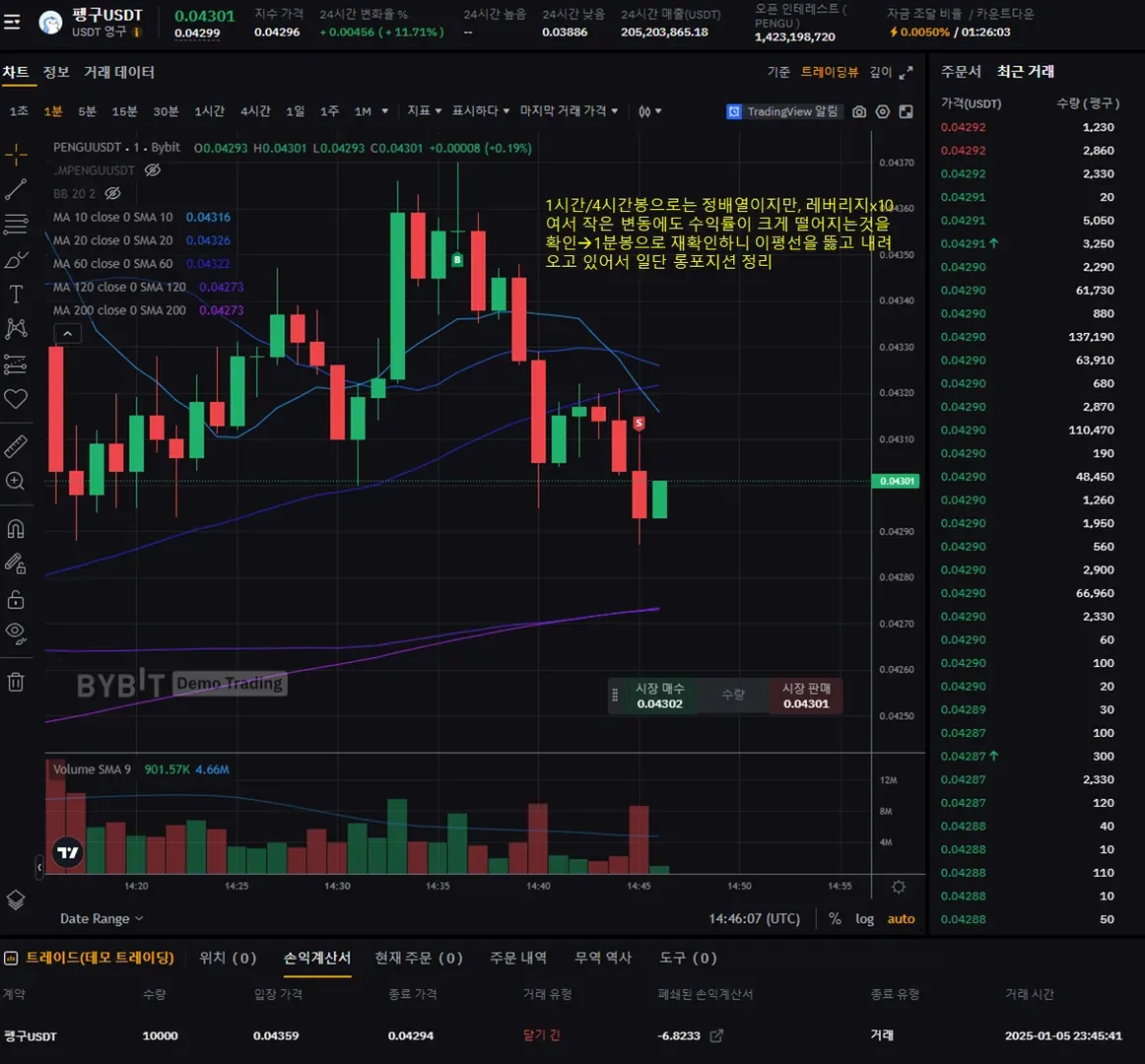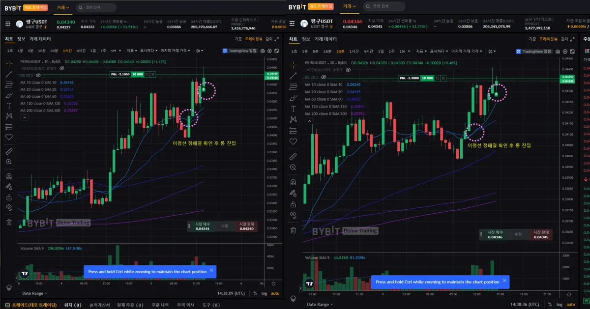 기존에 매수했던 코인들은 근거 없이 그냥 저점인 것 같다 해서 구매한 상태라, 바이비트 모의투자를 진행해봤습니다.
