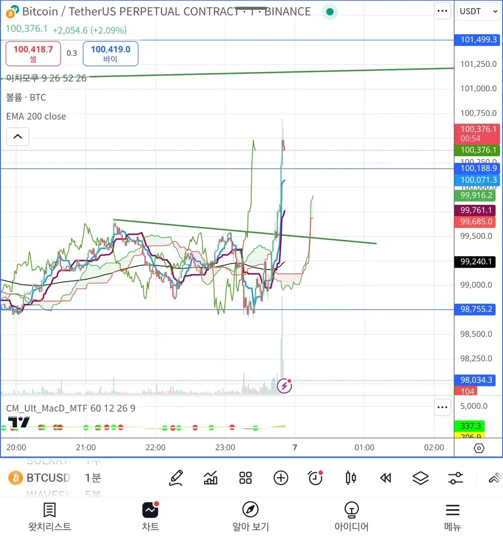 에고.. 감기기운때문에 차트를 못봤습니다만.. 기존에 그어두었던 98755자리가 절호의 지지자리였고