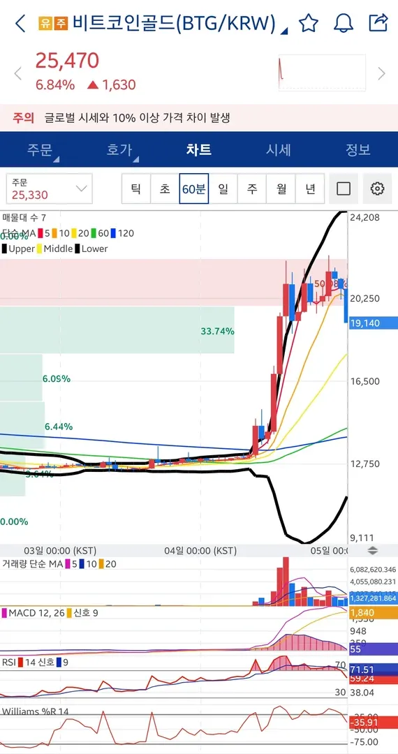 볼린저밴드와 이평선 참고하여 4% 수익 실현했습니다.