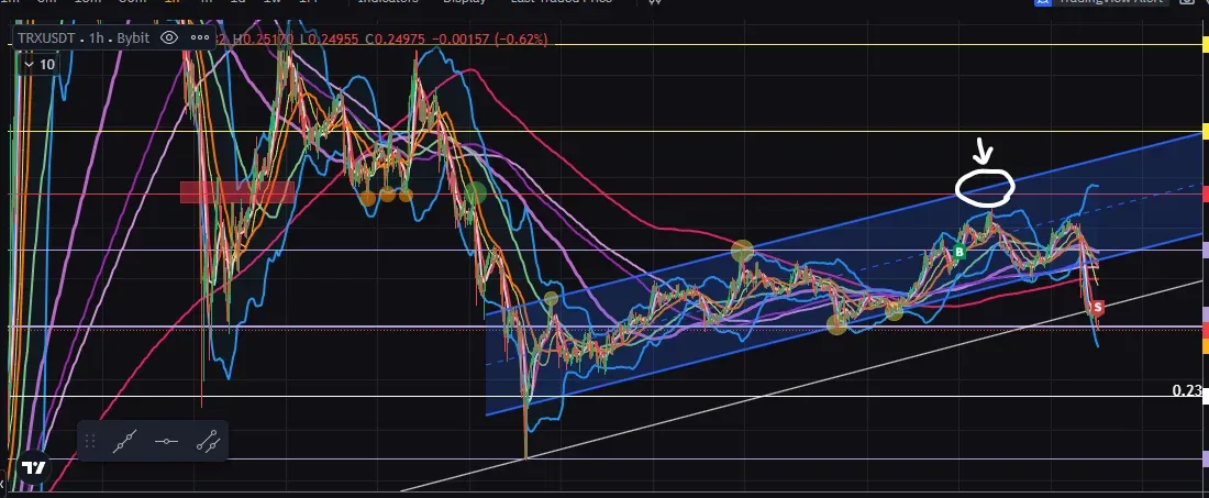 지지와 저항을 받고 매물대를 쌓은 빨간선에 도달할 것이라고 생각해 진입을 했고 상승 채널에서 저 선을 찍을것이라고 생각하여 진입했습니다