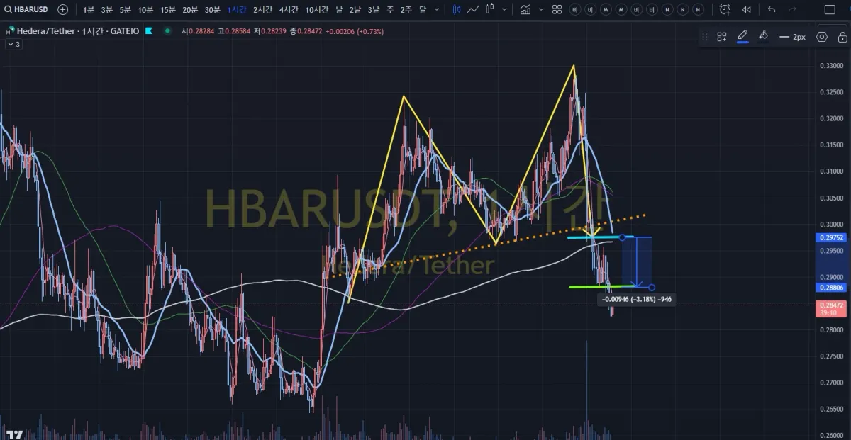 쌍봉 패턴이 보여 0.29752 매도진입