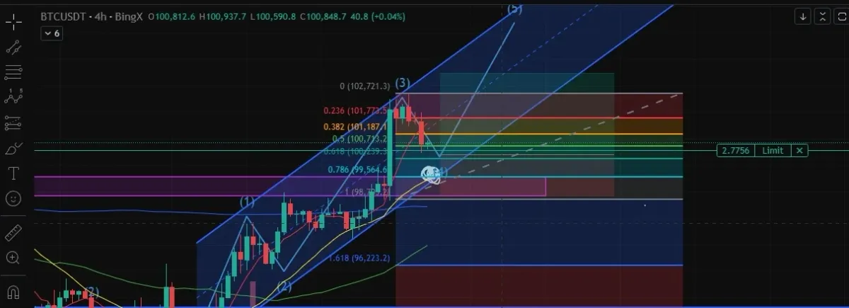 되돌림 0.5구간에서100,700 1차매수 0.618구간에서