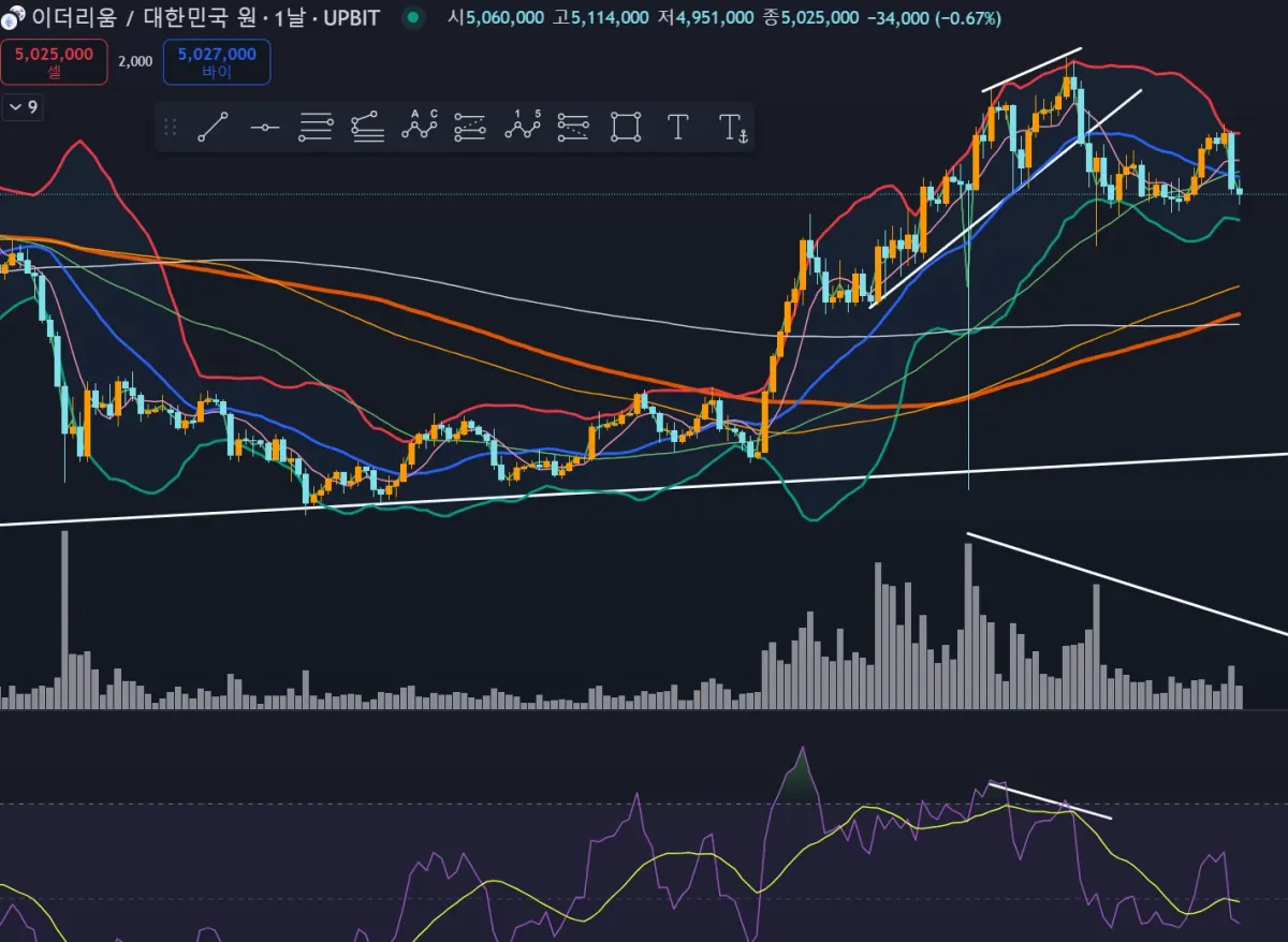 2. 단기 조정 발생 (RSI 하락 다이버전스)