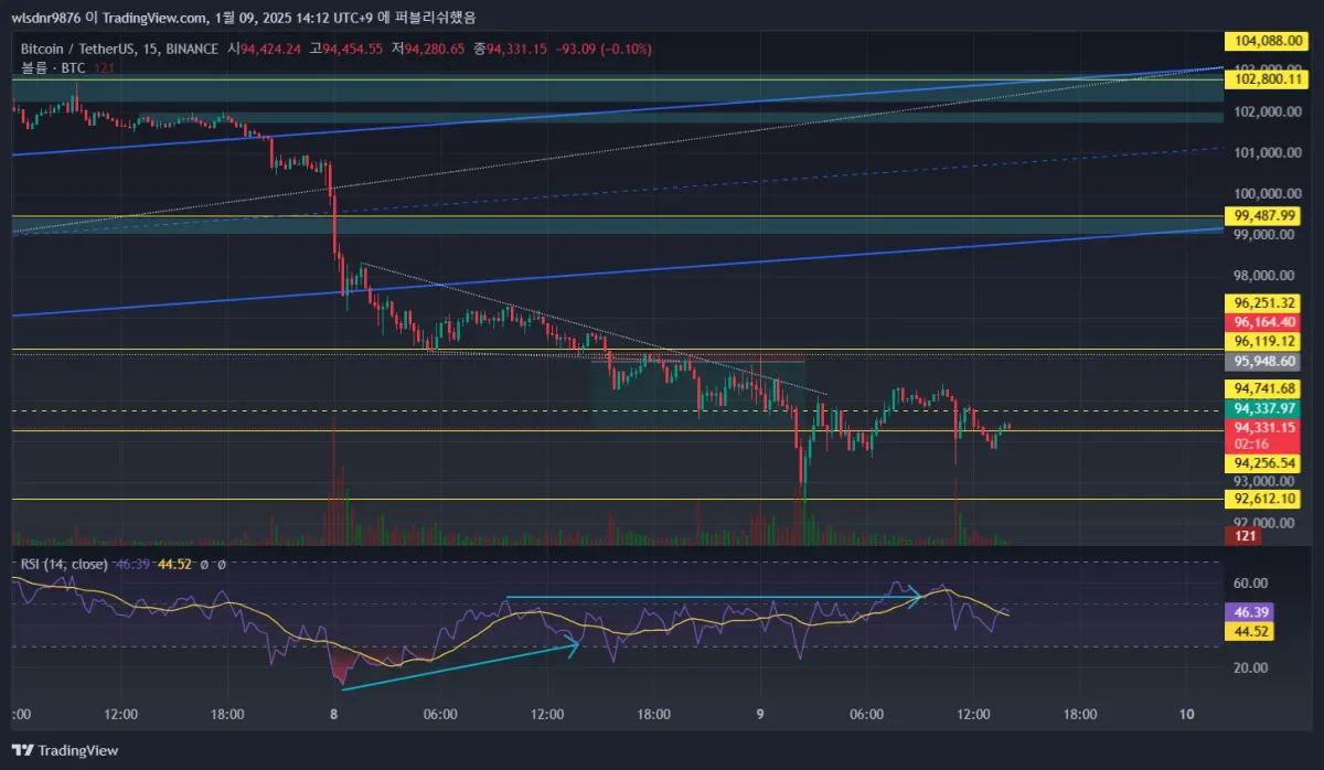 - 익절가 : 94332 (4시간봉에서 그은 지지선 위)