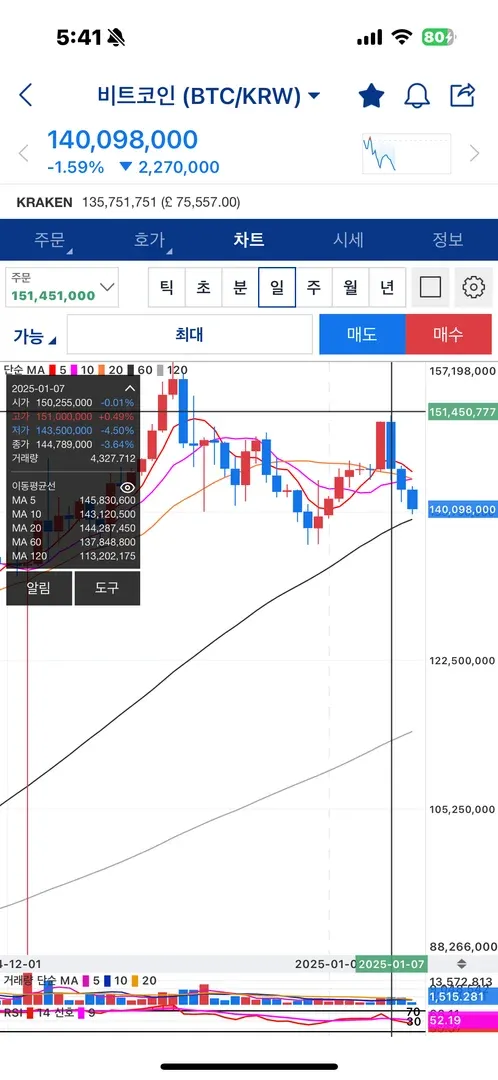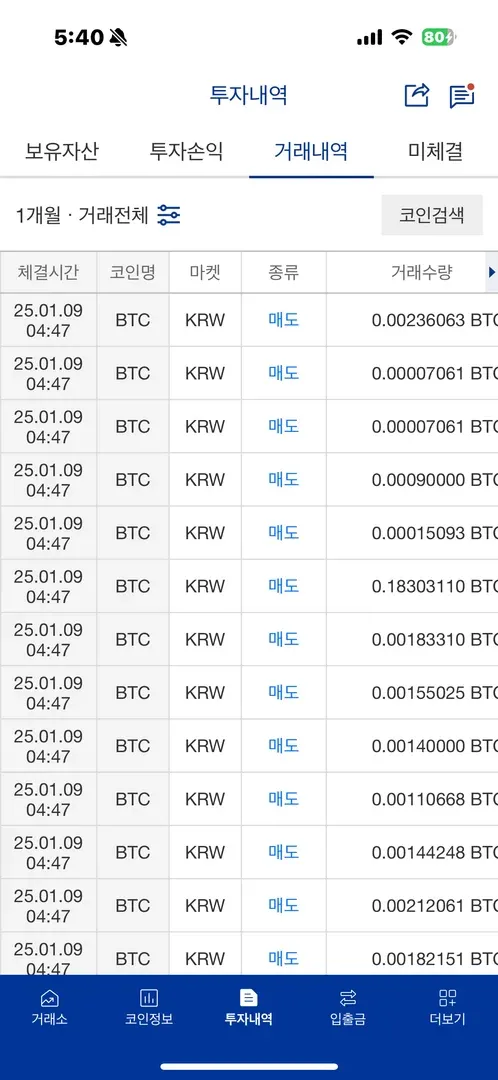1/7에 수익을 보면서 이제서야 상승인가 싶었지만 1/8일에 수익을 모두 되물림했습니다 차트에 대한 이해도 현재 분석도 제대로 하지 못하고 있음을 느꼈고 어느 정도까지 하락할지에 대한 기준도 못 잡겠다 싶어서 일단 0.3BTC 전액 손절을 진행했습니다 다시 분석한 후에 재진입 해보겠습니다