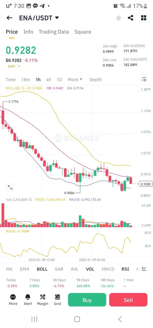 볼린져 밴드를 참고로 매수하고자 폴린져 밴드가 촙아지면서 보라색 하락 라인을 따라 캔들이 움직였고 거래량 또한 들어오고 rsi가 30 으로 가까워 지고 있어 하락쪽 현물 예약 매수를 걸었는데 욕심이 과했는지 예약 매수 금액위에서 다시 상승 중입니다.몇일 더 지켜 보려합니다.매수가를 전고점 -28%로 잡았습니다.차후에는 손익 분기점을 +,- 15%~20%정도로 수정을 해봐야 겠습니다.기존에는 투자를 주먹구구로 대충 했었는데 지금은 손익 비율을 따져서 계산을 꼼꼼히 해보고 있습니다.감사드립니다.날이 너무 춥습니다.감기조심하시고 건강 잘 챙기세요