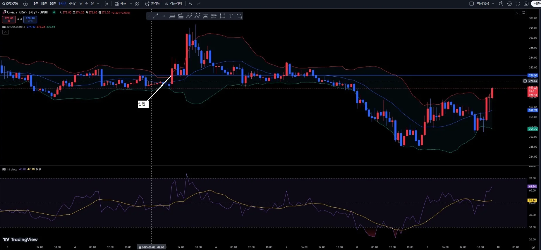 이후 1월 7일 저녁까지 진입가인 276원 언저리 횡보하였음