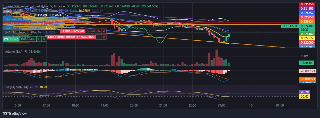 도지코인을 보면서 볼린저밴드+추세를 사용해 매매해봤습니다.
