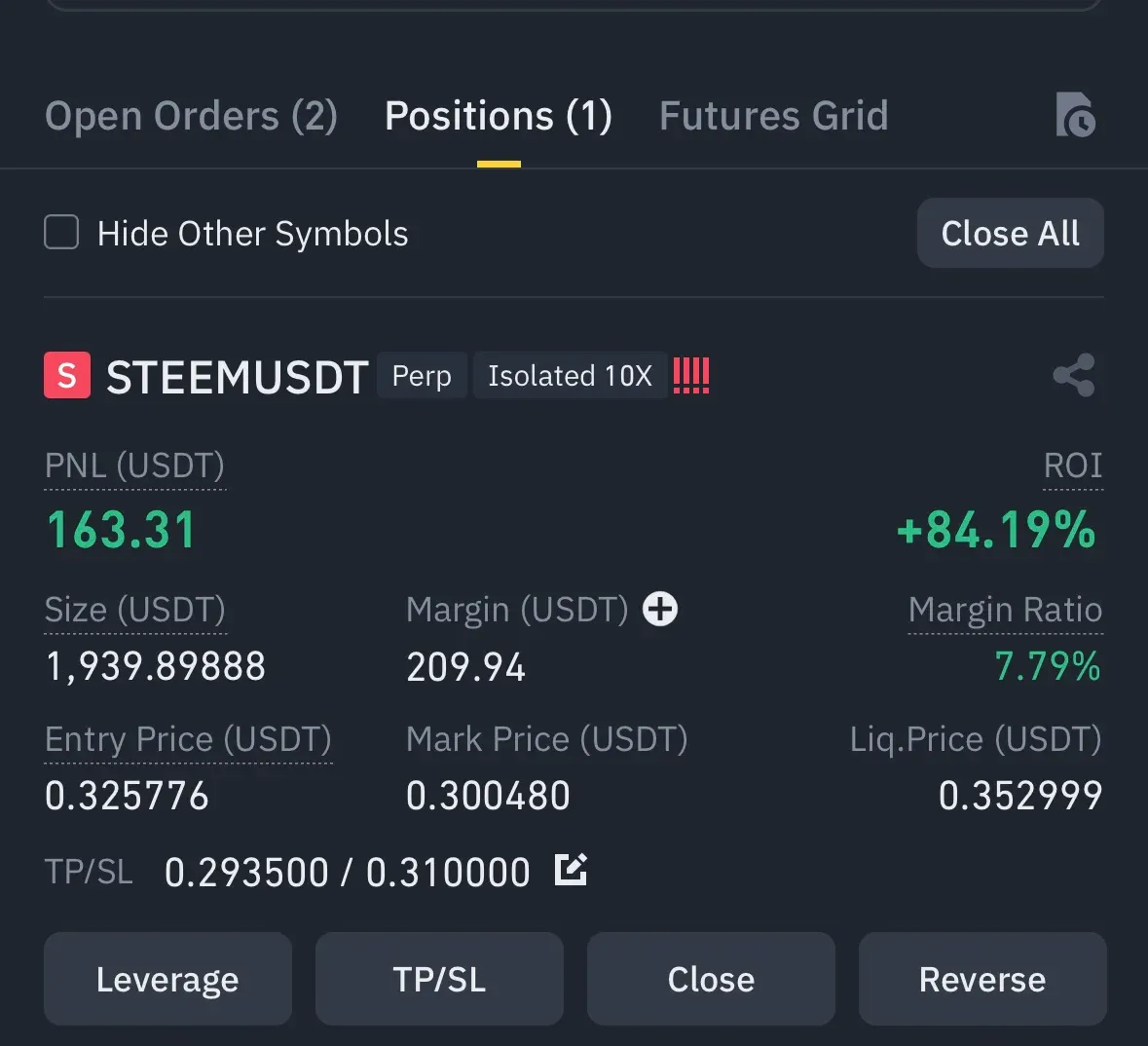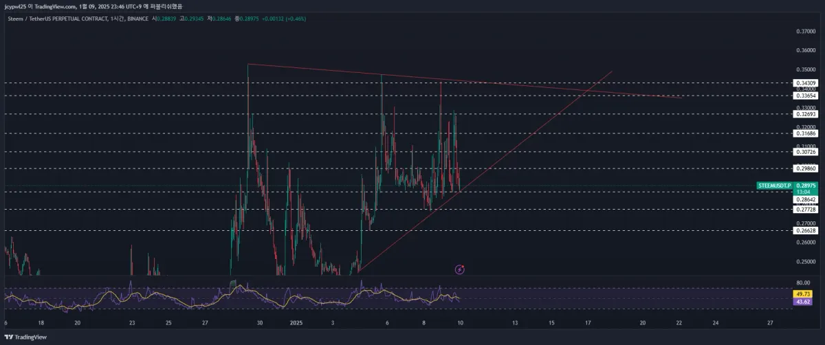 1시간봉상 전고점을 뚫지못하고 선을 하나씩 내려오는것을 보고 0.325776에 숏 포지션 진입후 작도한 지지선을 하나씩 내려가는것을 보다가 매도세가 약해지는것을 보고 최종적으로0.296포지션 종료하였습니다.
